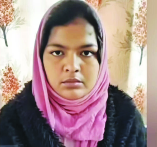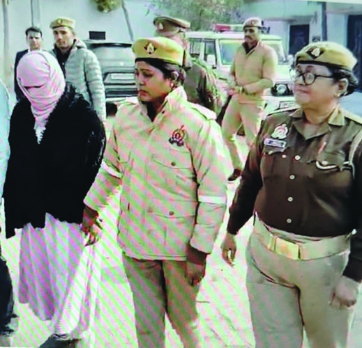 पति की हत्यारोपी रूबी को पुलिस में ले जाते हुए