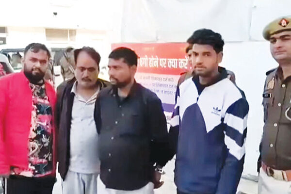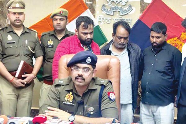 चारों आरोपियों की गिरफ्तारी के बाद प्रैस कौन्फ्रेंस करते पुलिस अधिकारी